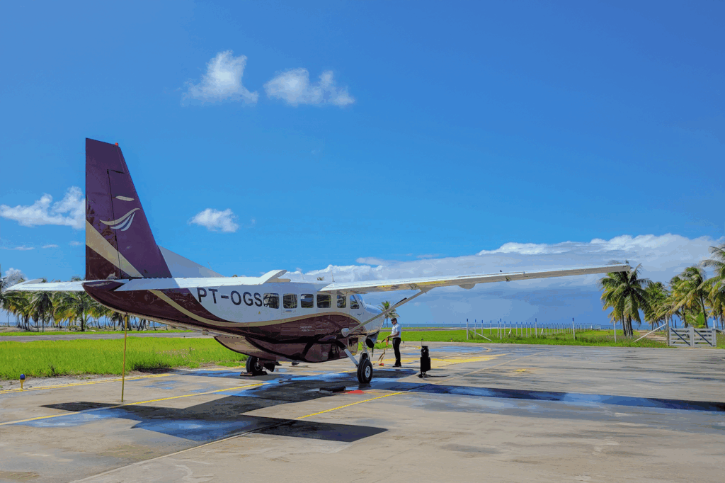Em Boipeba, o avião pousa no Aeródromo da Fazenda Pontal, situado no extremo sul da Ilha de Tinharé, e um transporte terrestre e outro marítimo levam você até a Vila da Velha Boipeba em menos de 10 minutos. O custo desse transporte é de R$ 30,00 por pessoa, e o pagamento deve ser feito diretamente à Fazenda Pontal, seja em dinheiro, Pix ou cartão.