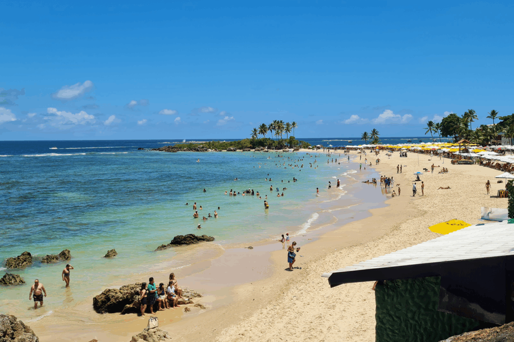 seguindo em frente, a atmosfera desacelera. As águas das praias da bahia neste trecho são mais calmas, ideais para remar de caiaque ou observar peixinhos com máscara e snorkel. É um convite para quem gosta de explorar sem pressa.